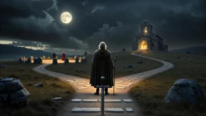 “Entre Avalon e Glastonbury, o rei que empunha a espada também precisa escolher em que fé repousa o coração.”