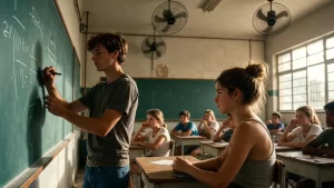 Ela usava uma blusa simples, o cabelo preso em um coque desalinhado e o olhar que misturava timidez e coragem. Tinha vindo de Itaquera de metrô, depois de ajudar a mãe numa faxina. Pedro falava de equações de segundo grau, mas ela prestava atenção no modo como ele movia as mãos, como se desenhasse o raciocínio no ar.