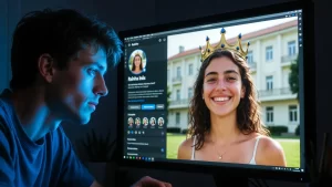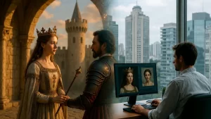 A inteligência artificial substitui a coroação histórica: Pedro cria perfil “Rainha Inês” com imagens geradas por IA, transformando luto em ato criativo digital, onde algoritmos alimentam memórias e pixels reconstroem presença impossível.